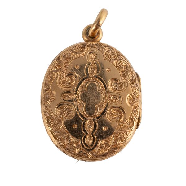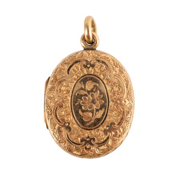 With floral, foliate and scrolling engraved decoration, measuring 19.7mm x 23.2mm without bale, gross weight 5.6 grams, with a box