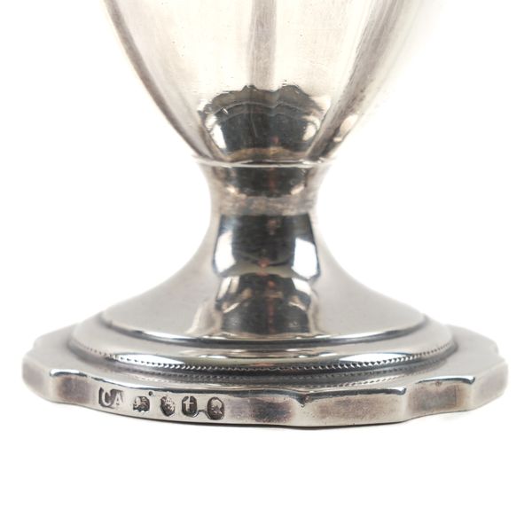 With engraved decoration below the rim, raised on a shaped circular foot, London 1794, height 17cm, weight 195 grams