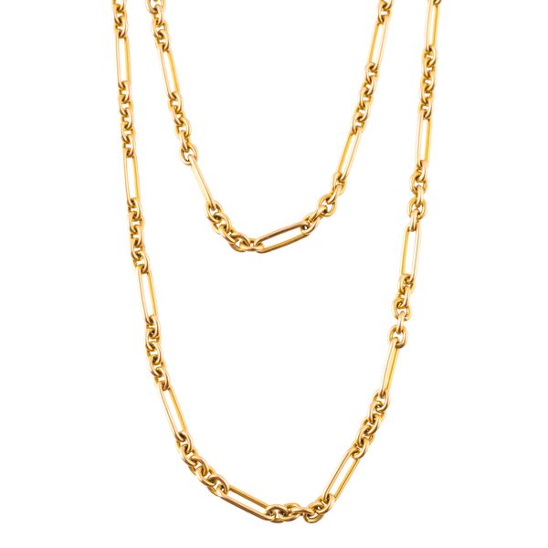 A 15CT GOLD LONG FIGARO CHAIN WITH SWIVEL CLASP