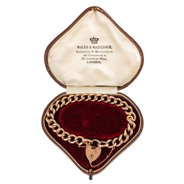 A GOLD CURB LINK BRACELET WITH HEART PADLOCK AND BOX (2)