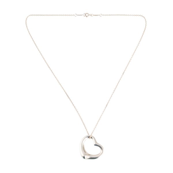 The heart pendant measuring 3cm in diameter and suspended from a Tiffany chain measuring 45.5cm in length, gross weight 11 grams, with a Tiffany pouch and box