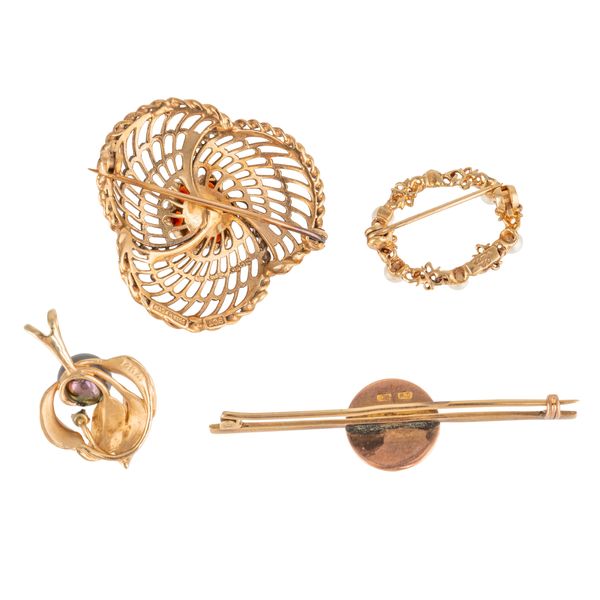 FOUR GOLD BROOCHES AND PENDANTS (4)