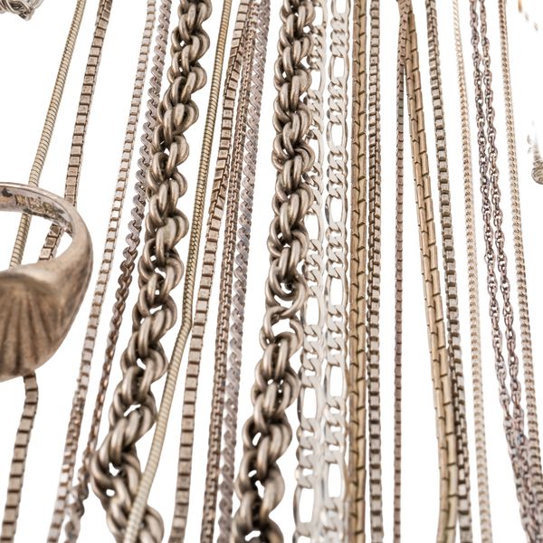 Comprising; four bangles, four bracelets, eight rings, a St Christopher pendant with a neck chain, a heart shaped pendant locket, two pairs of earrings, ten pendants and charms and ten neckchains, combined gross weight 179 grams
