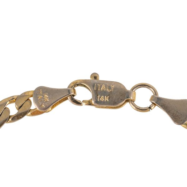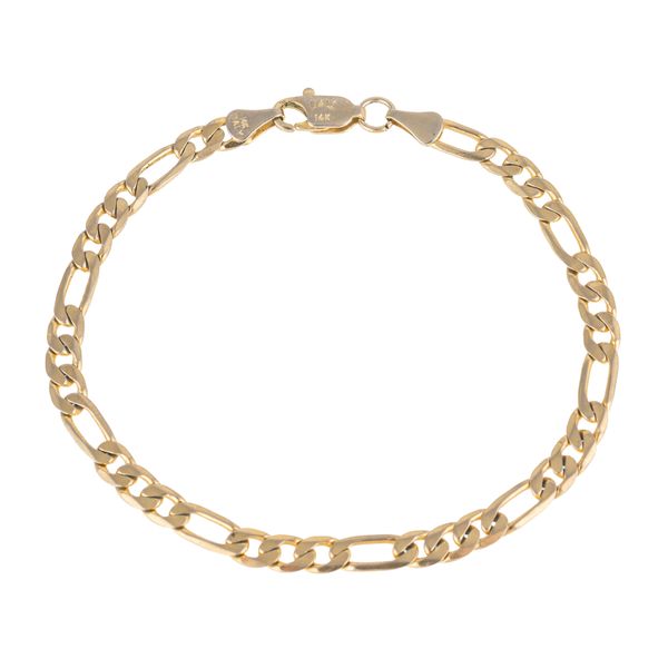 In a figaro link design with a lobster clasp, measuring 20cm in length, marked 14k Italy, gross weight 5.4 grams
