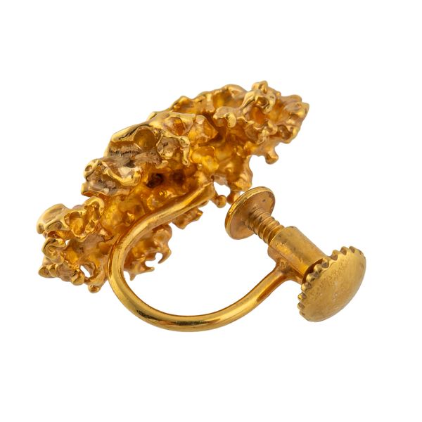 Cast as a natural nugget, with a screw back fitting, in unmarked gold, gross weight 4.2 grams