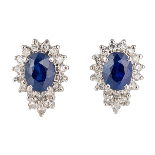 A PAIR OF SAPPHIRE AND DIAMOND OVAL CLUSTER EARSTUDS