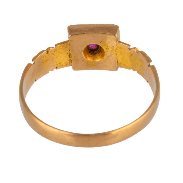 A 19th Century yellow metal ruby and diamond three-tone ring