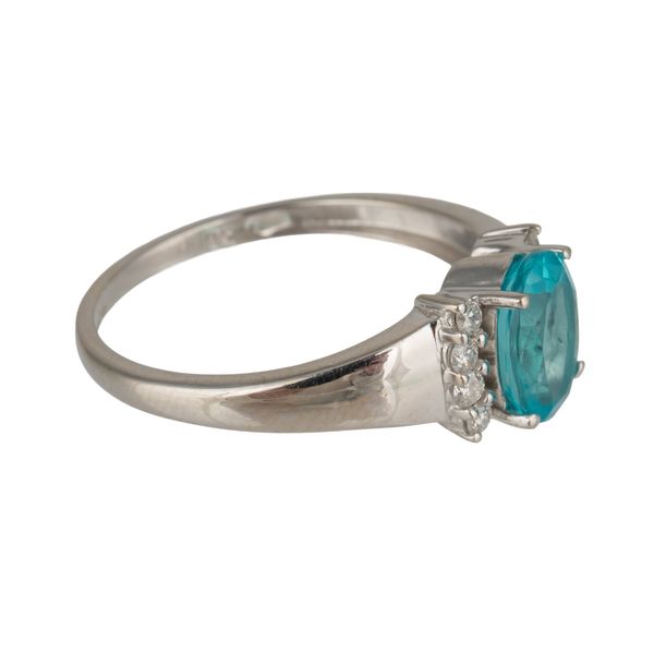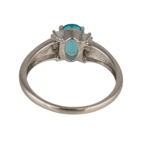 With a central oval cut apetite flanked either side by a row of diamonds, in 9ct white gold, size O, gross weight 2.6 grams