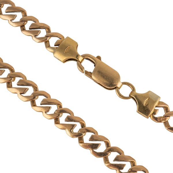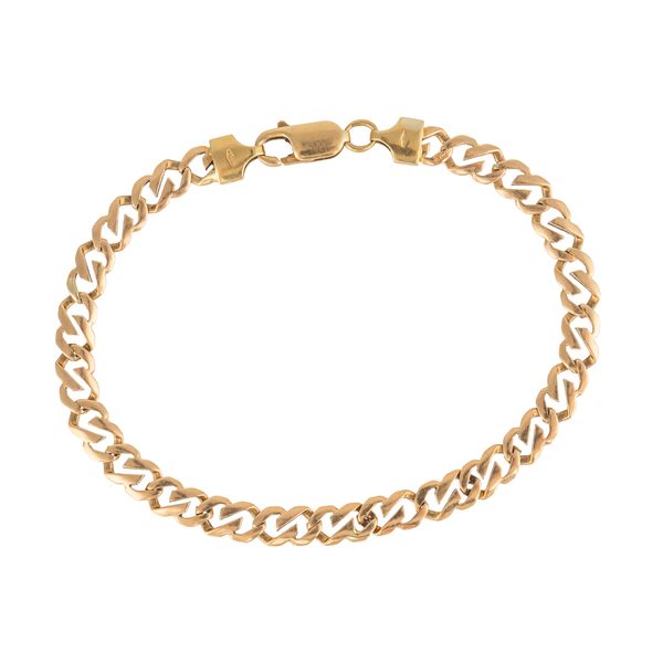 In a multiple link design, on a sprung hook shaped clasp, detailed 375, length 20.5cm, weight 9.4 grams