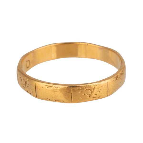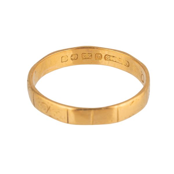 With traces of engraved decoration, Birmingham 1955, ring size O, weight 2.6 grams