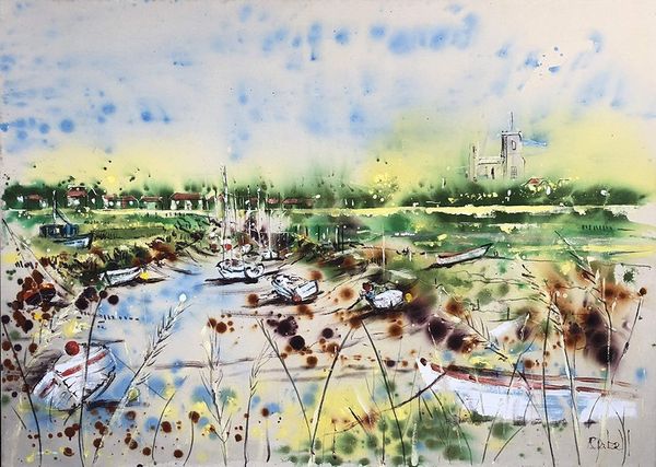 Inspired by a misty spring morning at Morston Creek with Blakeney Church on the distant hills and boats in the foreground, Dalzell’s paintings are large, colourful and expressive. Her free and lively use of paint makes her work as much about mood as it is of place. They celebrate the joy of light and colour in nature as well as the shape of the landscape. She describes her paintings as a ‘snapshot’ both visually and emotionally of a place. Many of her paintings are inspired by her Norfolk home.