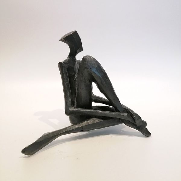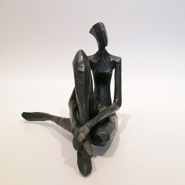Amber is an elegant figurative bronze of a seated nude woman by sculpture by Nando Kallweit. Nando’s minimalist pieces have elegant, elongated limbs.