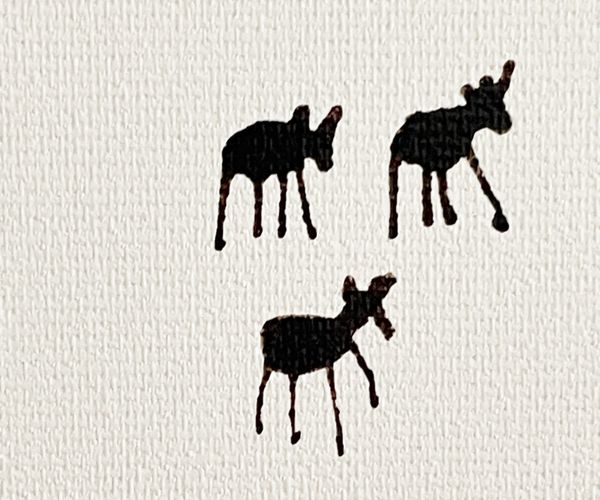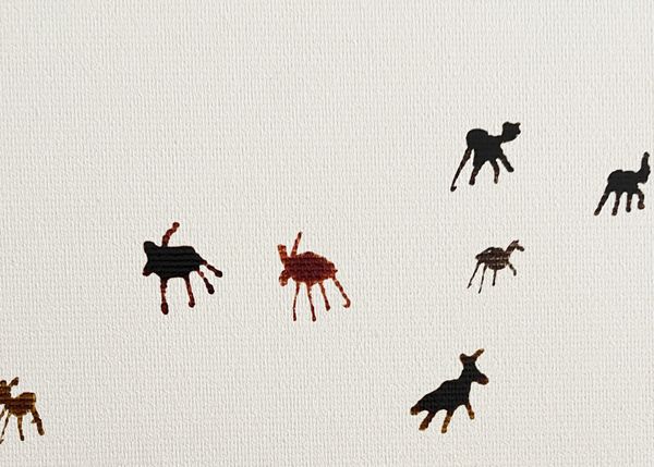 A wonderful collection of black sheep on a hill side in Jordan. A perfect counterpart to its "night time" companion 'White Bedouin Sheep'. The two paintings act as a diptych, the sheep representing the mountainous terrain where they live and forming a continuous skyline.