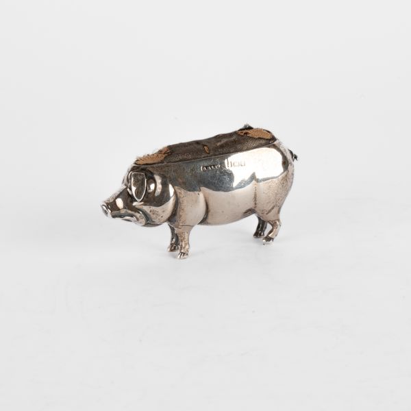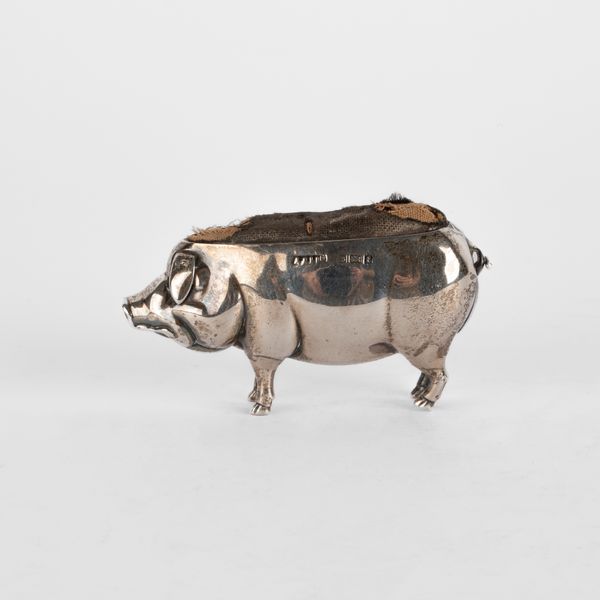 An Edwardian novelty silver pig pin cushion, Adie & Lovekin Ltd., Birmingham 1905, 6.5cm long