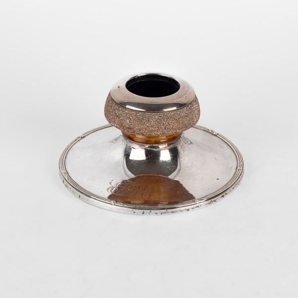 An Edwardian silver capstan vesta stand, Henry Clifford Davis, Birmingham 1908, with earthenware strike, 13.5cm diameter