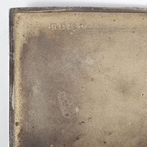 A Victorian silver trinket box, Nathan & Hays, Birmingham 1893, the cover decorated with figures outside a church, 5.5cm wide, a small silver ashtray, import marks for London 1930, decorated with a figure of a pipe smoker etc., approximately 310g