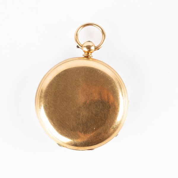 A Victorian 18ct yellow gold open face pocket watch, 43mm circualar white enamel dial with Roman numerals and subsidiary seconds dial, movement signed 'Jn Gouldar Gloucester number 33147', case hallmarked London 1887, case of plain design, total gross weight approximately 91.5g