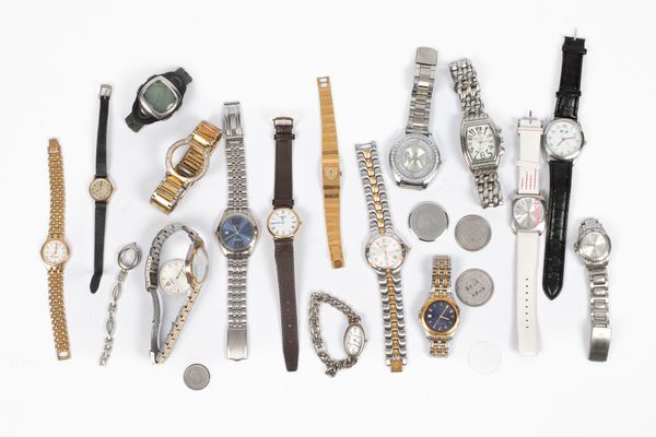A collection of wristwatches, including an 18k gold plated Raymond Weil, Rotary, Sekonda etc.