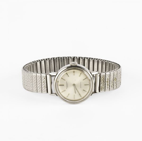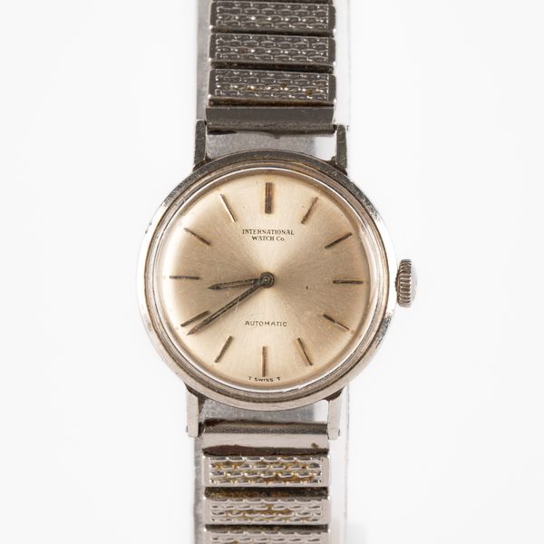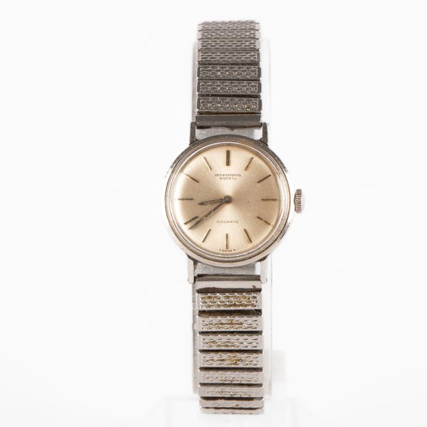 An International Watch Company (IWC) lady's stainless automatic wristwatch, the circular champagne coloured dial with baton markers, on an expanding metal bracelet