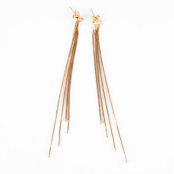 A pair of 9ct yellow gold drop earrings, post and butterfly studs, total gross weight approximately 4.9g