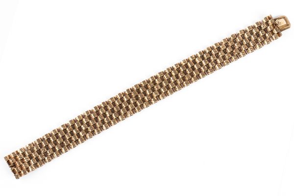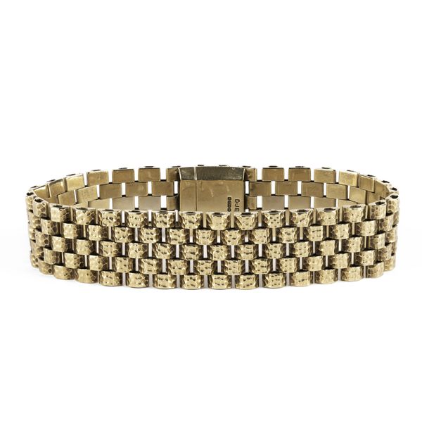 A 9ct gold brick link bracelet, of textured design, approximately 21.5cm long, total gross weight approximately 55g