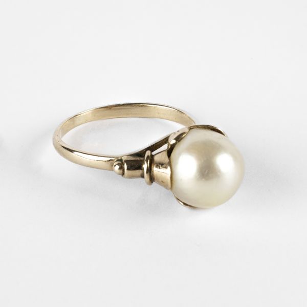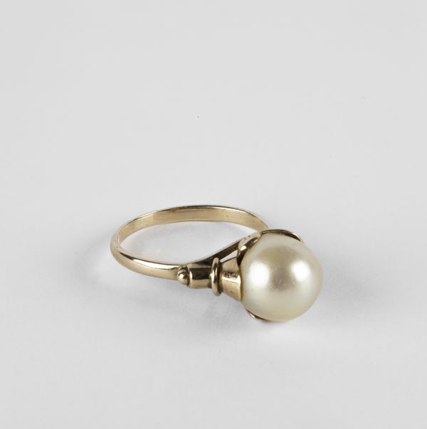 A 14k yellow gold and cultured pearl dress ring, size N½, total gross weight approximately 3.5g