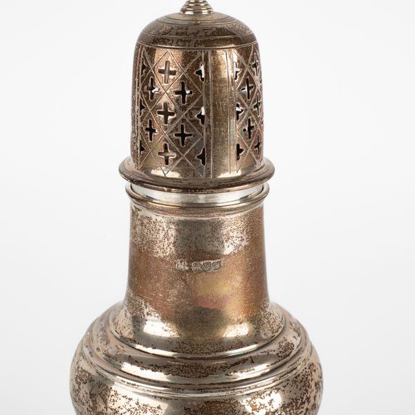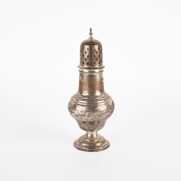 An Edwardian silver caster, Barker Brothers, Chester 1908, of baluster form with pierced cover, 23.5cm high, approximately 249g