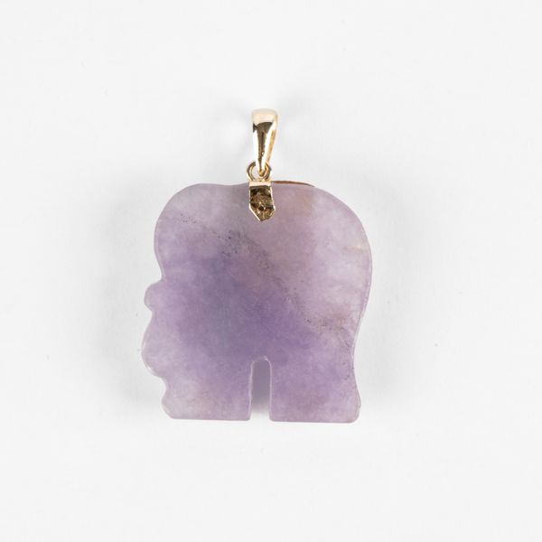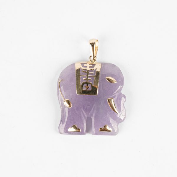 A carved elephant pendant, with yellow metal mounts and highlights, stamped 'H Kong 14k', total gross weight approximately 6.2g
