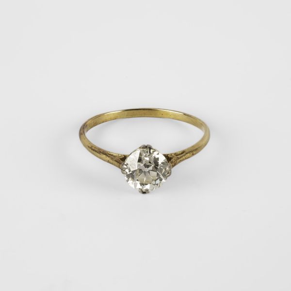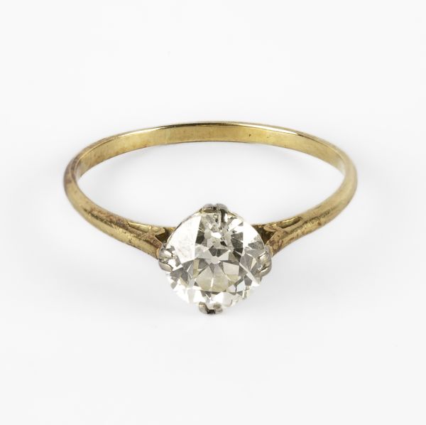 A diamond solitaire ring, set with a round old cut diamond, approximately 1.20cts, ring size Q1/2, unmarked yellow metal, total gross weight approximately 1.9g