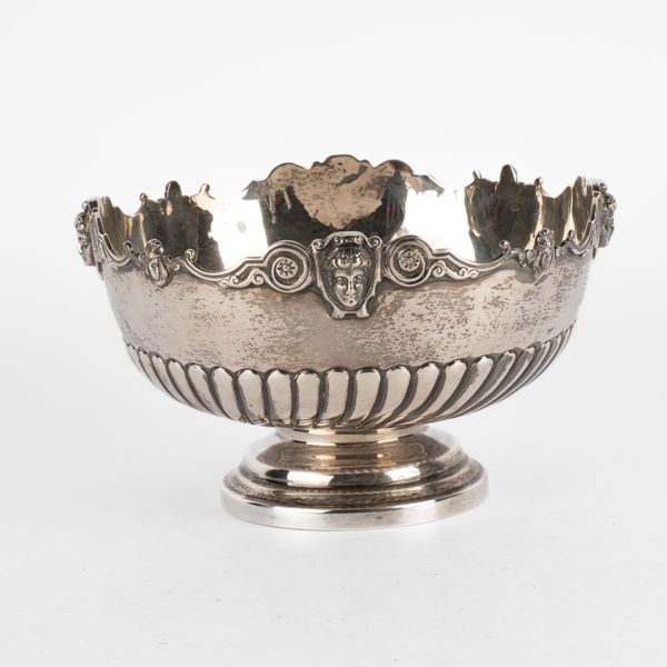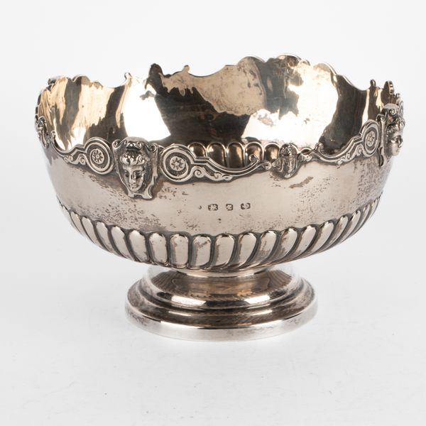 A Victorian silver rose bowl, Birmingham 1899, of half ribbed form with maskheads to the rim, 20.5cm diameter, approximately 563g