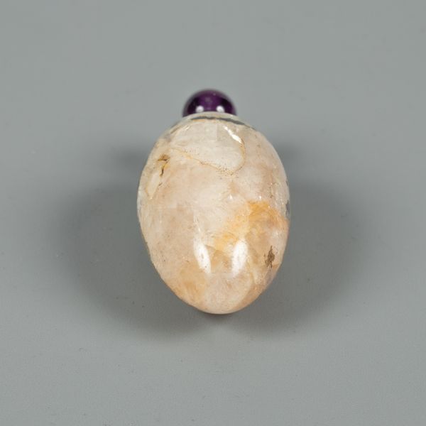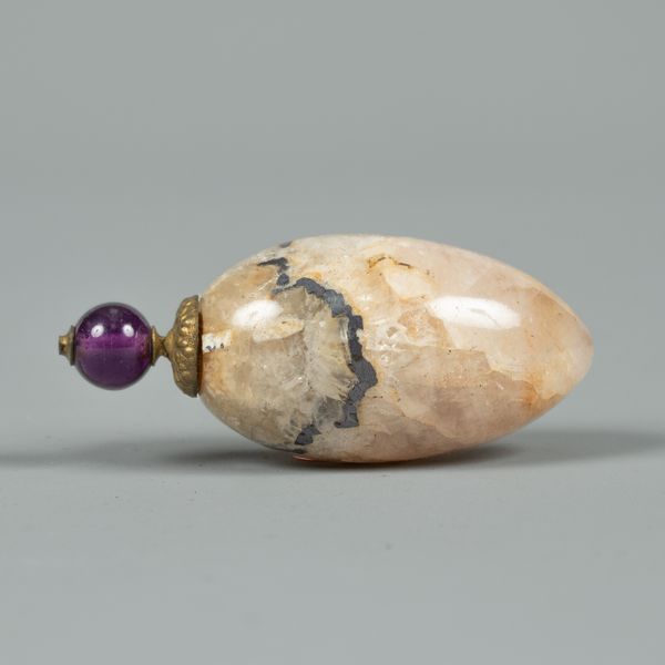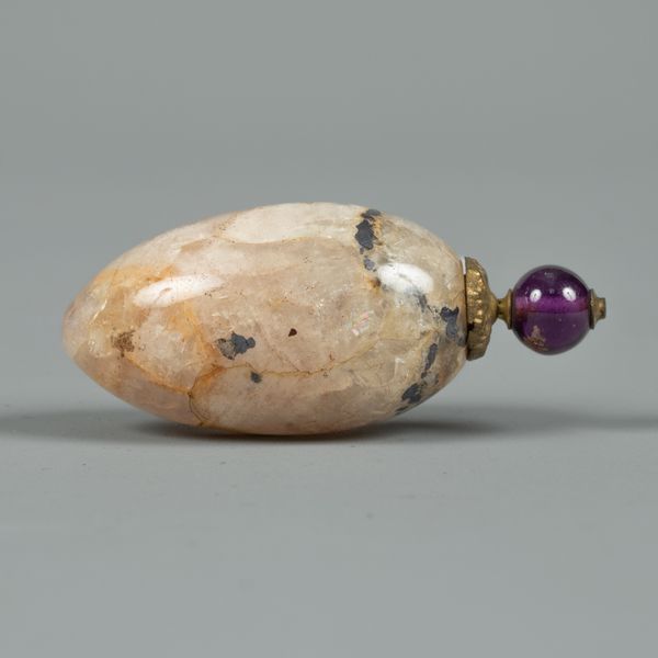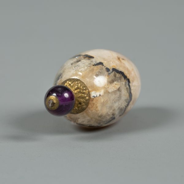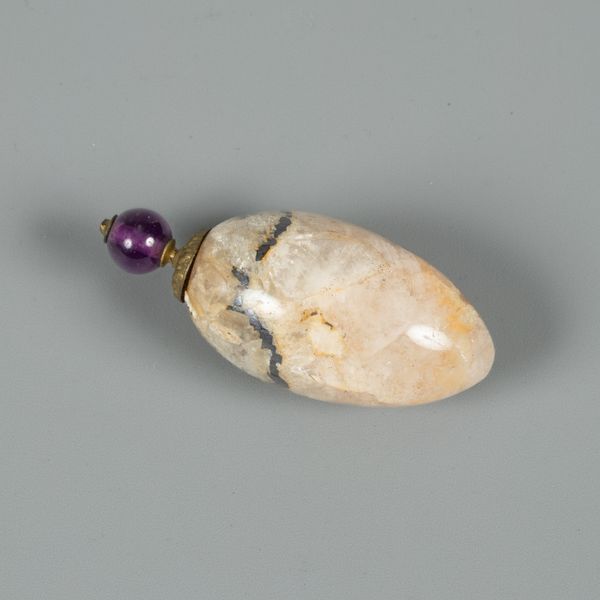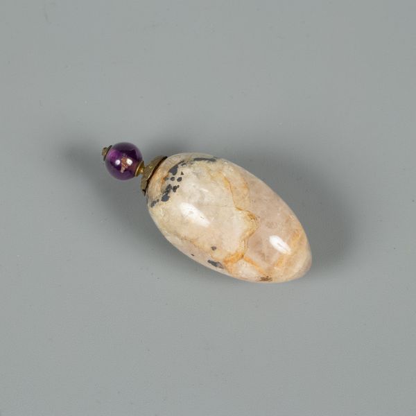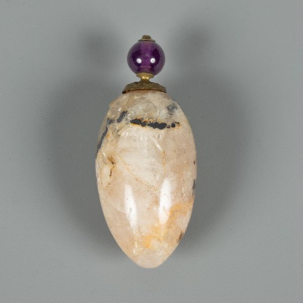 A Blue John scent bottle, other form with gilt metal mount and amethyst coloured bead stopper 5.5cm long