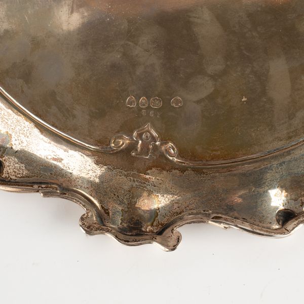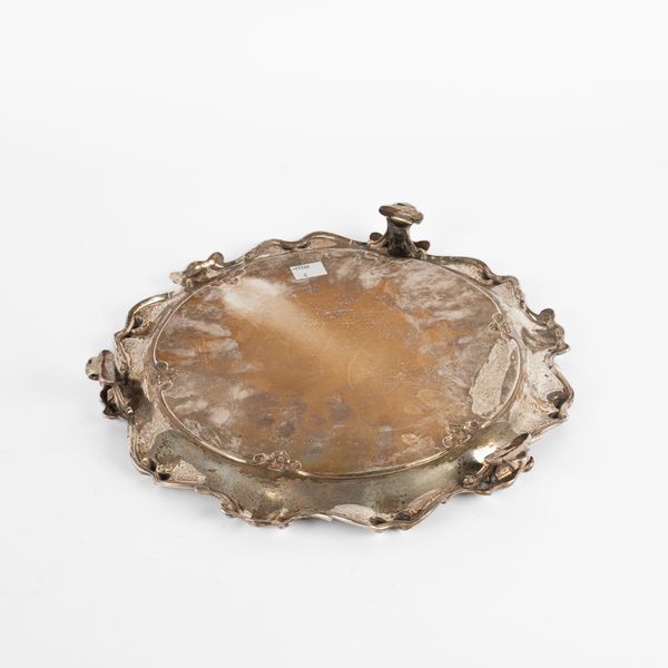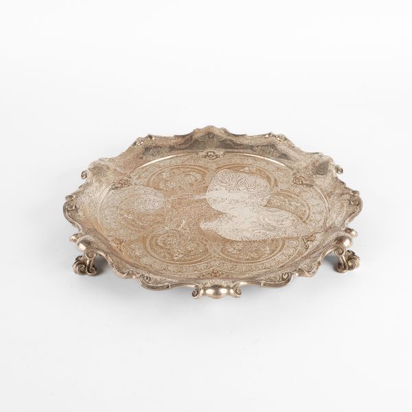 A Victorian silver waiter, Watter & John Barnard, London 1891, with wavy scrolling border and engraved decoration throughout, 31cm diameter, approximately 818g
