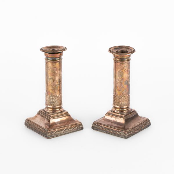 A pair of Victorian silver desk candlesticks, JB, London 1884, of column form, weighted, 15.5cm high