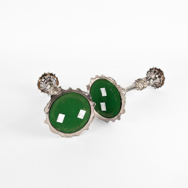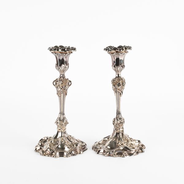 A pair of early Victorian silver candlesticks, William Allanson & Co., Sheffield 1838, of knopped form decorated with trails of fruiting vines, loaded, 27cm high