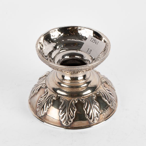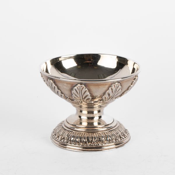A Victorian silver trencher salt, Robert Garrard, London 1863, with stiff leaf decoration, 8.5cm diameter, approximately 199g