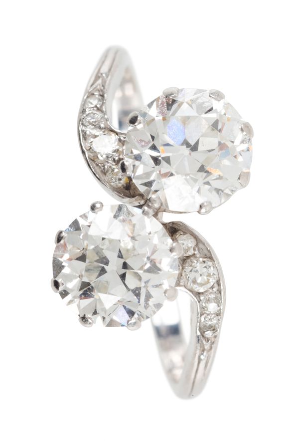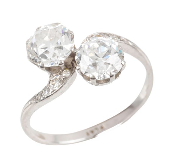 each old cut diamond c. 1 carat, to a platinum shank with shaped diamond set shoulders, ring size Q/R, c. 4.5 grams total weight