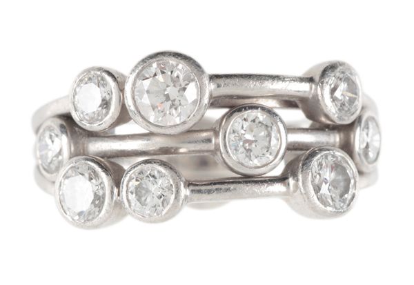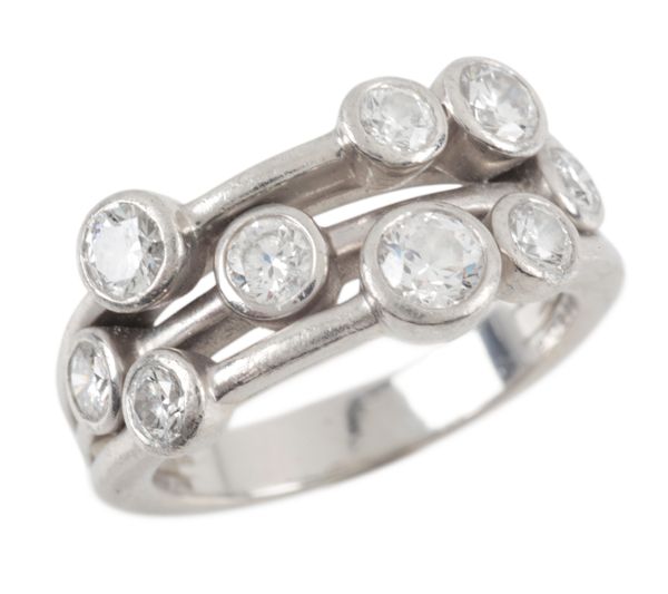 nine brilliant-cut diamonds, mounted in platinum, c. 1.50 carats total weight, the shank engraved "Boodles", hallmarked London 2014, ring size P/Q, in a "Boodles" presentation case and outer card box