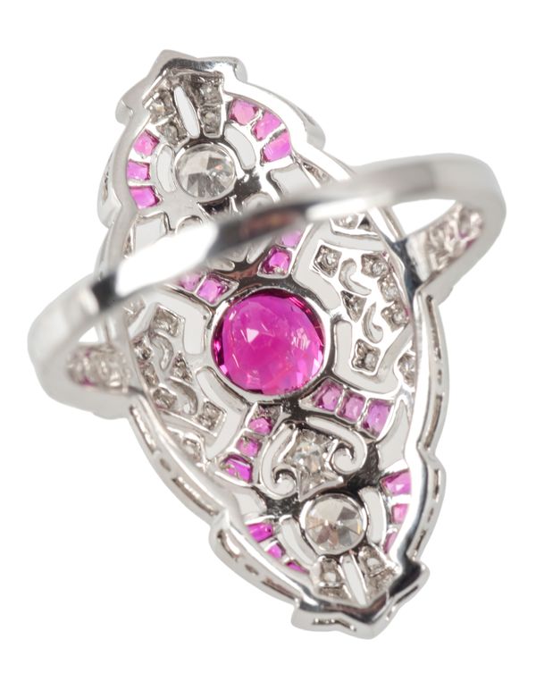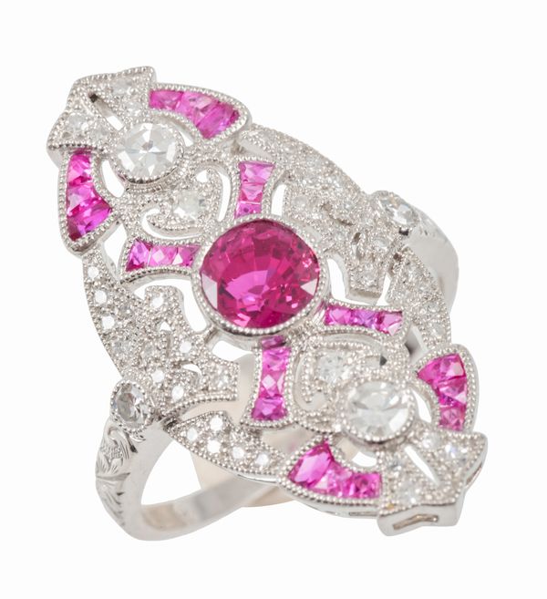 AN EDWARDIAN STYLE RUBY AND DIAMOND DRESS RING