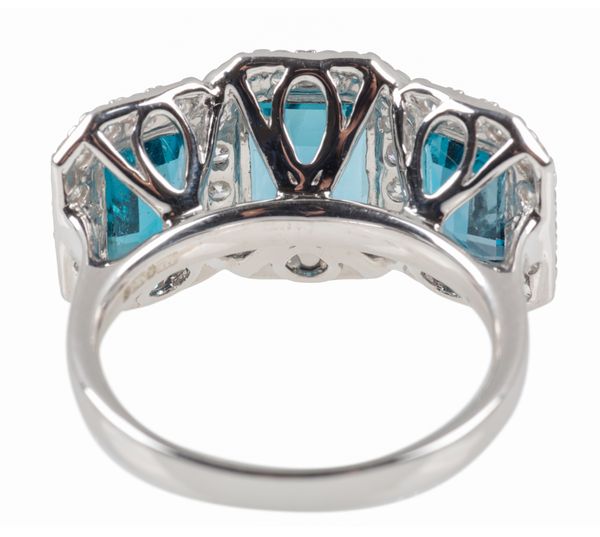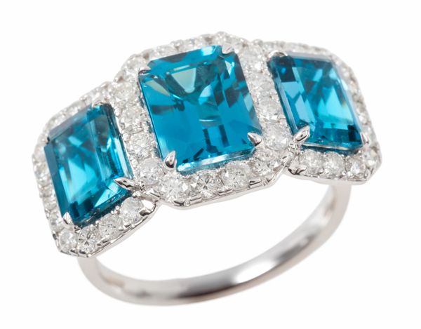 A BLUE TOPAZ AND DIAMOND DRESS RING