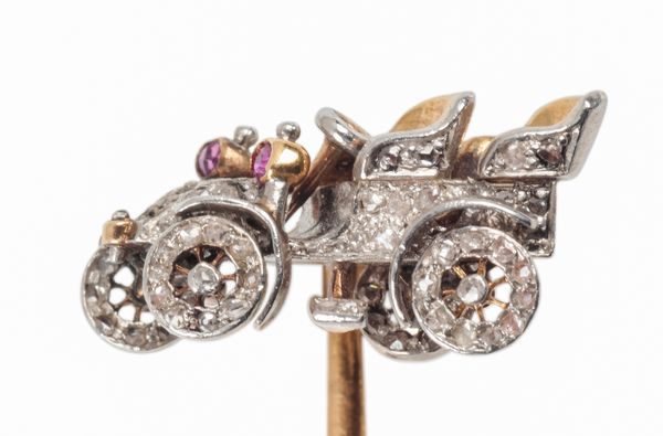 A CAR STICK PIN SET WITH RUBIES AND DIAMONDS
