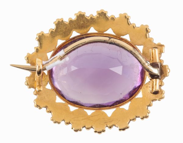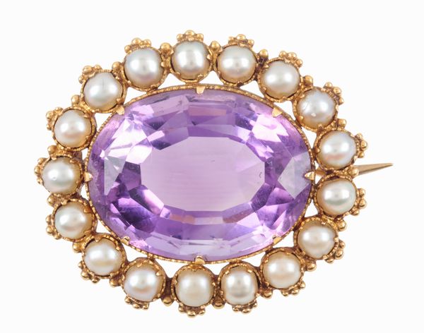 A VICTORIAN AMETHYST AND SPLIT PEARL BROOCH