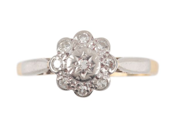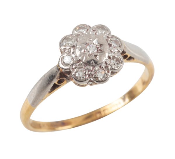 AN 18CT GOLD AND DIAMOND SET CLUSTER RING