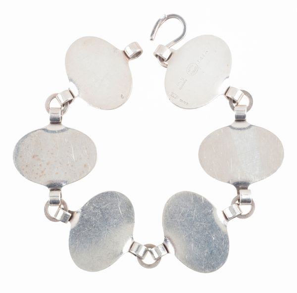 chain linked with hook fastener, one oval link inscribed "Georg Jensen 141A", "925 S Denmark", 18cm long, c. 27.1 grams