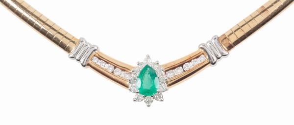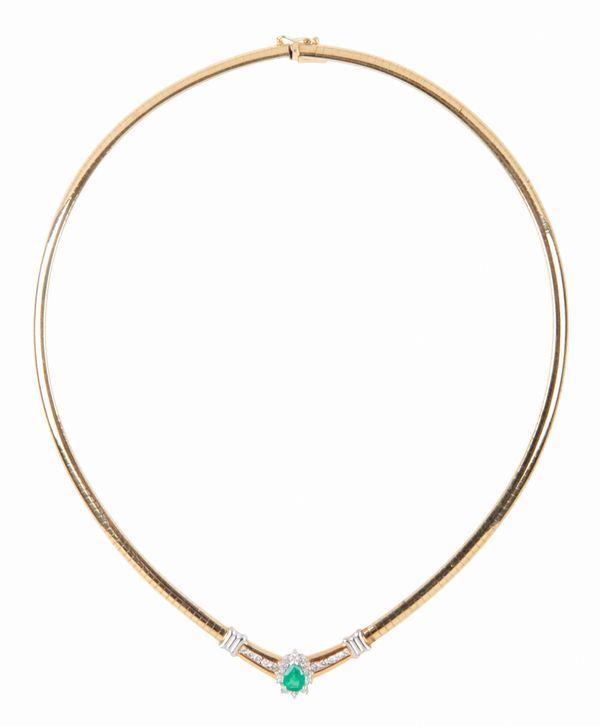 A 14CT COLLERETTE NECKLACE SET WITH EMERALD AND DIAMONDS