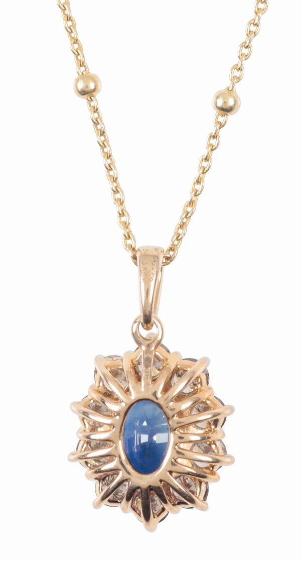 A SAPPHIRE AND DIAMOND PENDANT NECKLACE