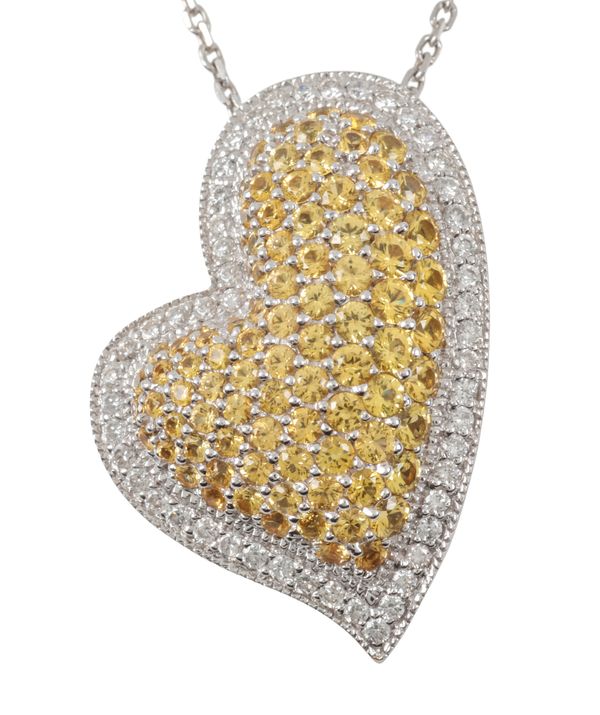 A YELLOW AND WHITE DIAMOND PENDANT AND CHAIN