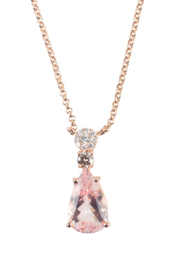 A MORGANITE AND DIAMOND PENDANT NECKLACE