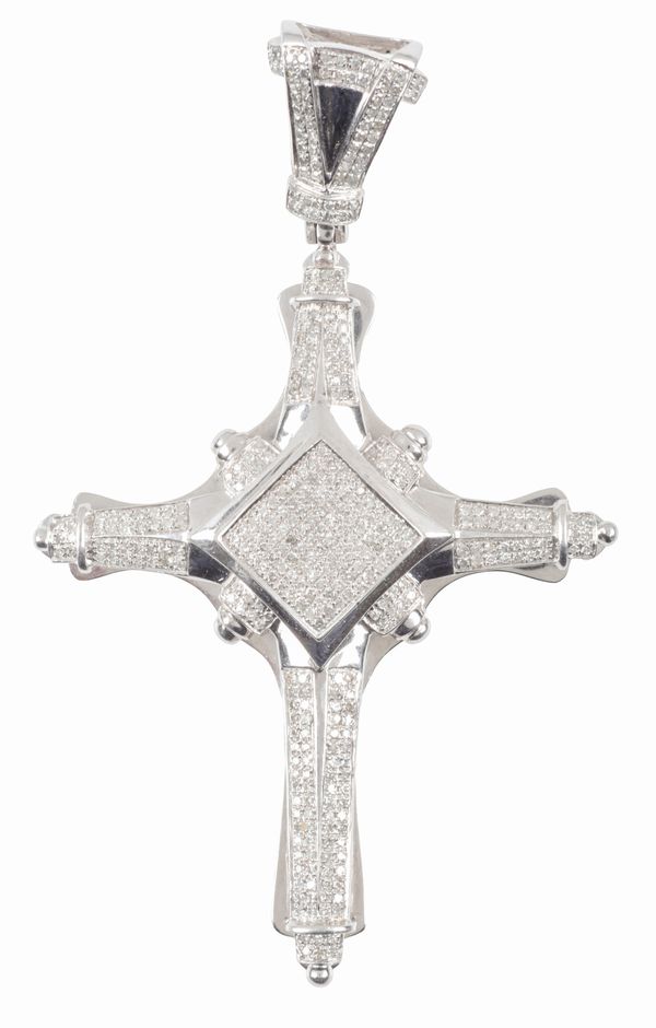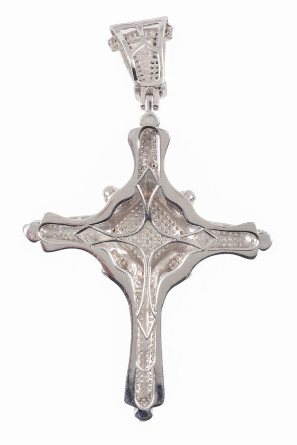 A 9CT WHITE GOLD AND DIAMOND SET CROSS PENDANT