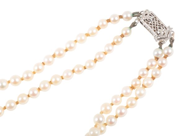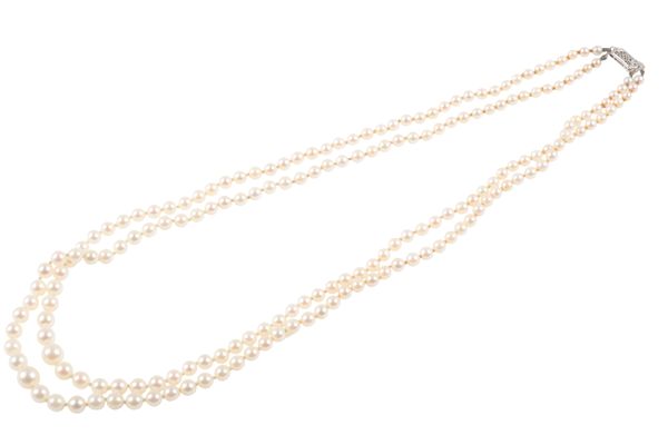 A GRADUATED CULTURED PEARL TWO STRAND NECKLACE