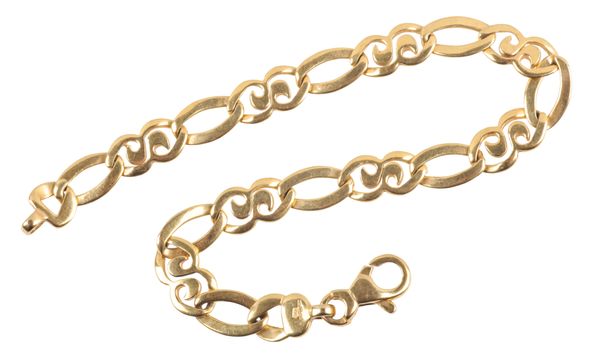 A 9CT GOLD FLAT FANCY LINK NECKLACE
